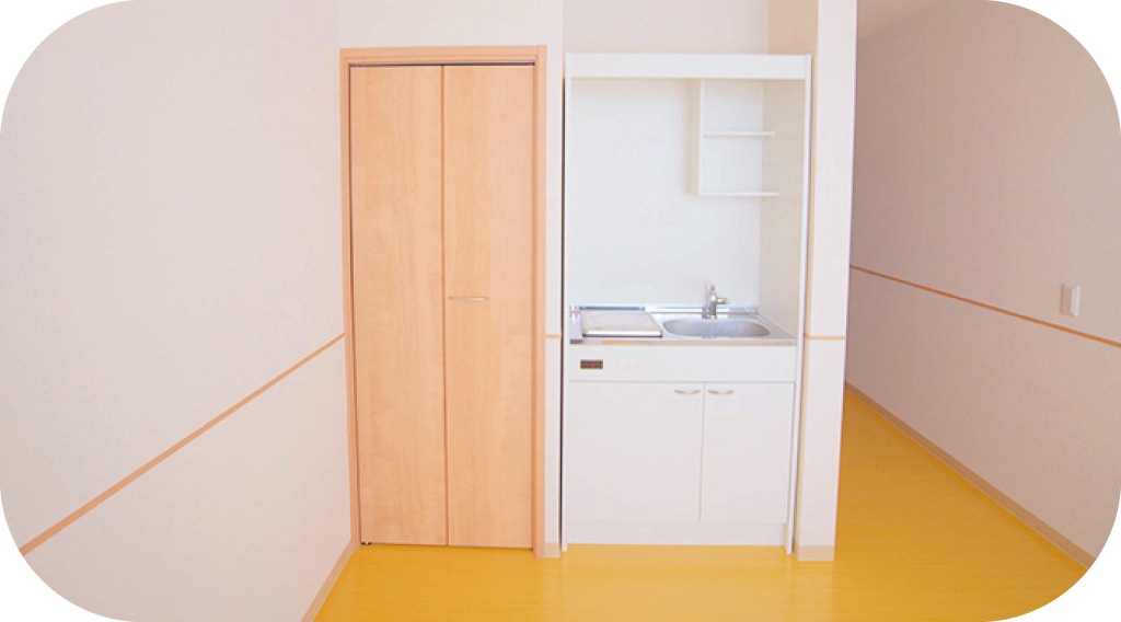 | 居室設備 | トイレ、洗面台、ミニキッチン、エアコン、クローゼット、 カーテン、ナースコール、照明器具 |